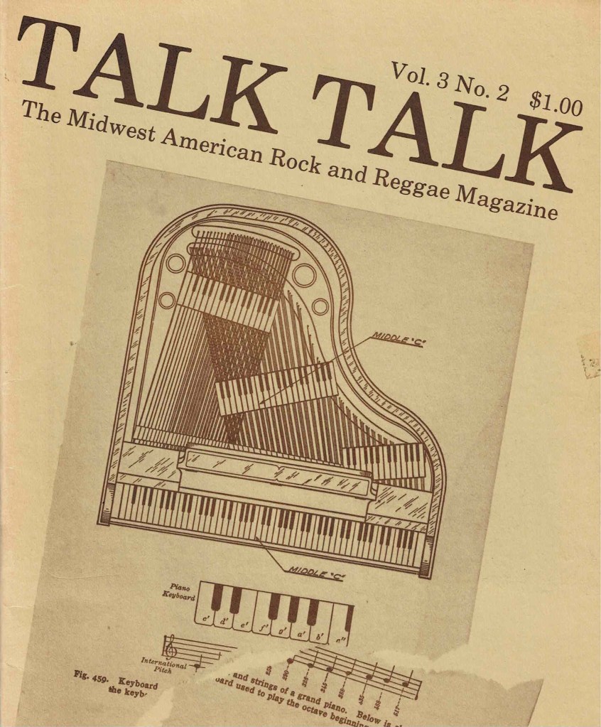 Well this cover really makes you wanna kick out the fuckin’ jamz, doesn’t it? Talk Talk was a frequently-published, late 70s/early 80s “Midwest American Rock and Reggae Magazine” from Lawrence, KS. Lawrence gathered a bit of a counterculture halo effect over the years by being a cool college town plopped in the middle of Kansas, and particularly because William S Burroughs spent some quality time there. I’ve been to Lawrence a couple of times, and frankly, I loved the place. Easily one of the most liveable places in this country, vibrant & safe and with mostly decent weather, as long as you’re cool with being surrounded by college kids and cornfields and with having Kansas City as your nearest metropolis.