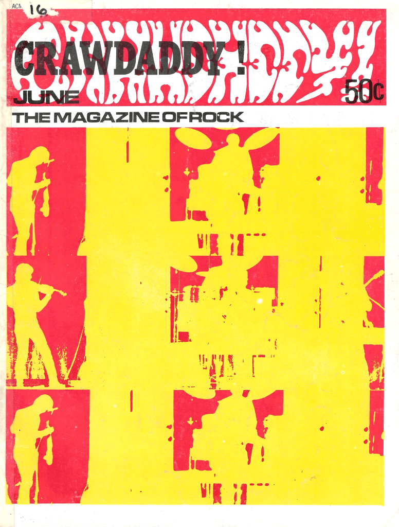 Paul Williams was the editor of the original version of the magazine, which started up in 1966. His run at the helm ended in late 1968, not long after this issue, Crawdaddy! #16 from June 1968, but the thing continued throughout the 70s, albeit without much cultural cache that I can discern. Williams would later re-launch the magazine in the early 1990s as almost a fanzine again from his then-San Diego home. He provided a writing hub to so many folks who’d go on to be fairly well-known, such as Richard Meltzer and this issue’s Sandy Pearlman and Peter Guralnick. (Wikipedia says that Gilda Radner and Dan Aykroyd wrote for it in the 70s!).
