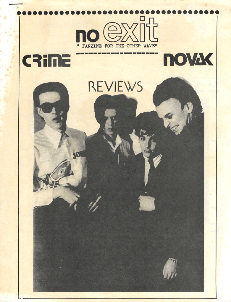 The ‘77 excitement here is real. I’m talking ALL-CAPS real, as a single lowercase letter is nowhere to be found within No Exit #1. James Stark – one of the punk photography all-timers – handles the visuals, and fashion is helmed by a woman going by the outstanding blank generation moniker of Jane Who (Jane’s big fashion contribution is a single page of photo booth shots of pretty people preening in sunglasses – the page is called appropriately called “Fashion”). And right out of the gate, we’ve got some attitude being thrown. “Thanks to the only bands in SF, all four and no one else”. Having lived in San Francisco myself for 37 years now, I can appreciate the sentiment. During some of our leaner years, four might even be a bit too optimistic. Luckily for the No Exit triad, Crime and The Nuns and whomever the other two were would be joined by at least another half-dozen true ringers within months.