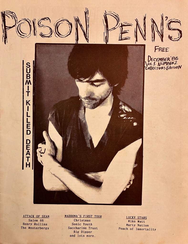 Poison Penn’s #2 apparently takes its name from the recently betrothed Madonna and Sean Penn, who, stoked by Sonic Youth, somehow became a cause celebre in the deep underground that year. It was this sort of in-joke that seemed to teeter between irony and sheep-like conformity, and something I did everything I possibly could to ignore at the time. Having not seen the first issue of this fanzine, it seems from letters to the editor to have overdone the Madonna angle even more than this one, and I’d likely find that a little hard to bear. This one keeps it in check, aside from ladling on too many questions about her/him to interview subjects like Peach of Immortality and Mike Watt, who try their best to wriggle away.