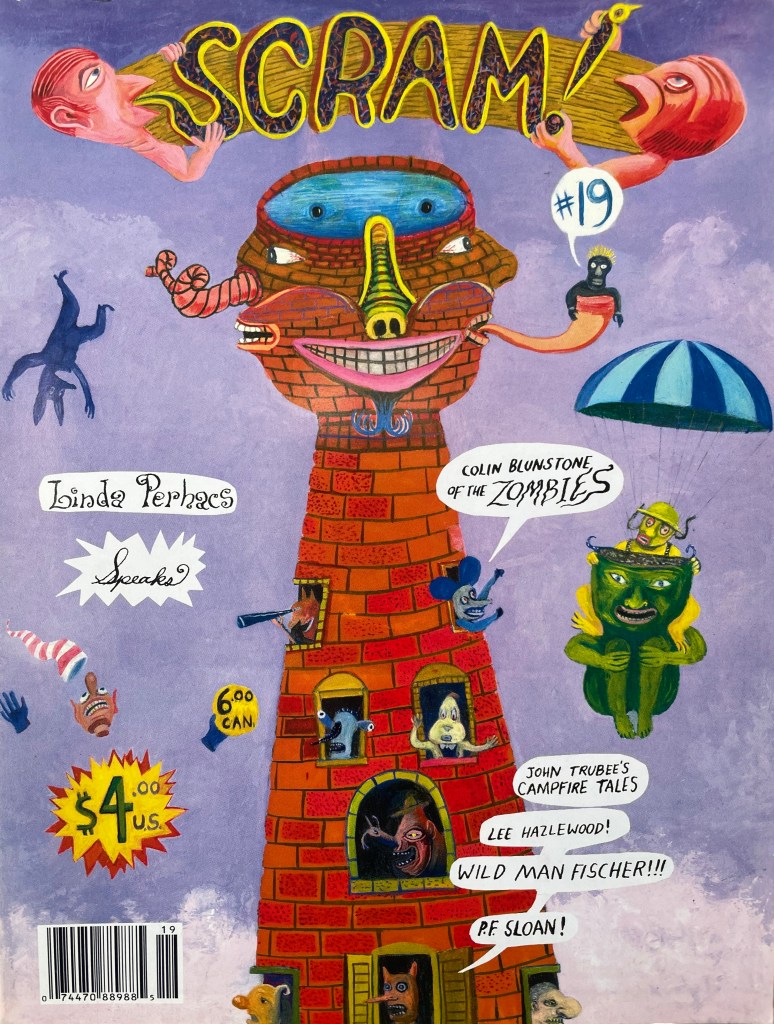 Scram #19 – “Hollywood’s Premiere Journal of Unpopular Culture” – is the Spring 2004 issue, and features a few of the same unearthings I was myself pretty excited about at the time. To wit: Linda Perhacs. Not long after the time I’d discovered how much I loved Vashti Bunyan’s music, I went looking for other lost 60s/70s female folk oddities, and came across Perhacs’ dreamy and strange 1970 Parallelograms. It resonated pretty strongly, and not only with me. It had just been reissued on CD a few years before this issue, and as Cooper notes in the intro, “The reviews were odd. Without any evidence beyond the text itself, the critics made assumptions about Linda, painting her as a dippy hippie sprite who somehow channeled these vast ideas unknowingly”. So Cooper and Ron Garmon had the first sit-down interview ever granted by Perhacs for this issue to fill in the gaps.
