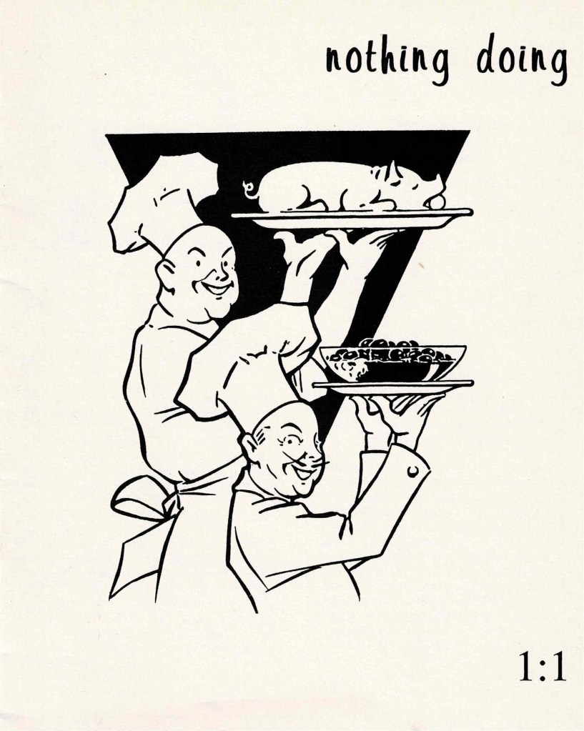 There’s a further section of reviews of recordings from “The China Record Company”, whose albums include We Steel Workers Have an Iron Will and Poor and Lower-Middle Class Peasants Love Chairman Mao Most. If I ever looked for these in thrift stores, I never found them. A representative proxy for the remainder of Nothing Doing #1 might be the “cartoons” section, which I’ve helpfully scanned for you here. Laugh it up, and I’ll get down to tackling this mag’s second issue here within the next 365 days.