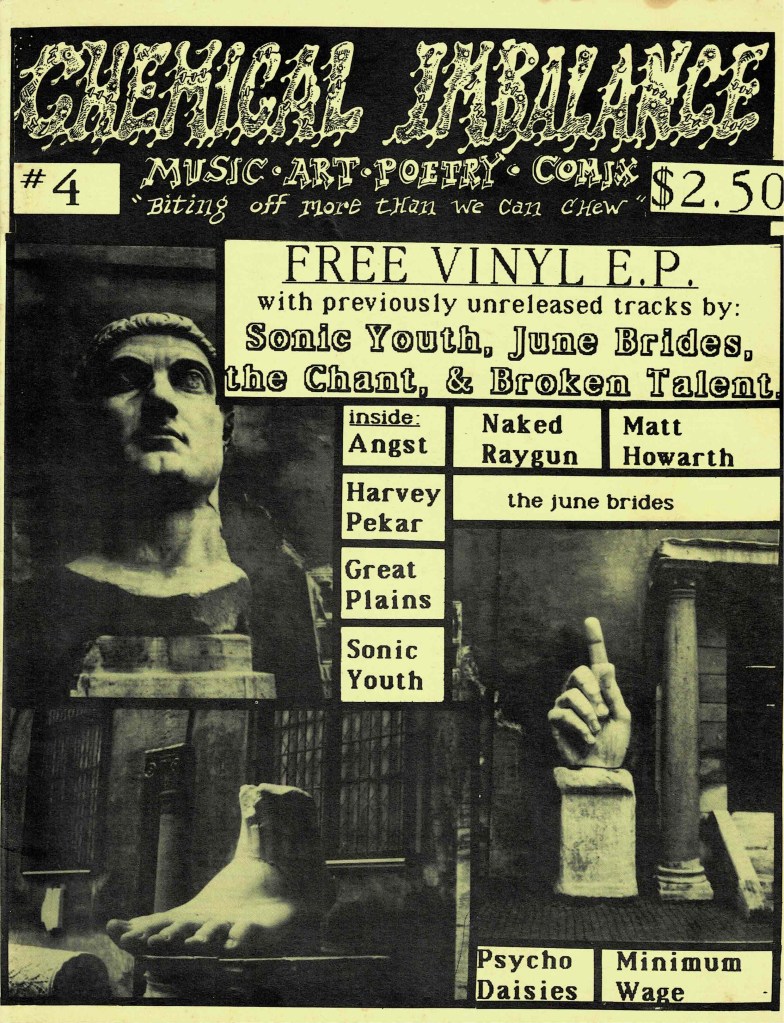 Only one more bit of funnin’, and then I’m done. (For the record, I enjoyed reading Bite Down #1 cover to cover today). His interview with Thurston Moore of, yes, Sonic Youth, is really good, mostly because Moore was and is always game to talk shop with a fellow record/music obsessive. It makes me laugh because the questions are so the sorts of questions I would ask bands not just in the 80s, when I’d meet them in person, but even through the 90s, as if they didn’t have anything else to talk about. “How’s the tour?”. “So you guys are playing with Laughing Hyenas”. “What’s the deal with this one record I collected from you” etc. Questions that were just as one-dimensional as I was at that age. I also learned that Thurston Moore’s tour diary in Forced Exposure was enlivened by some somewhat mean-spirited edits by Jimmy Johnson, which, I guess if it happened to me, I’d never submit anything to anyone ever again.